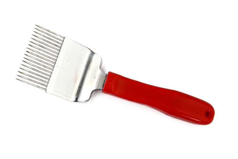 Odsklepiacz widelcowy. Posiada 17 profilowanych igieł oraz rączkę wykonaną z plastiku.