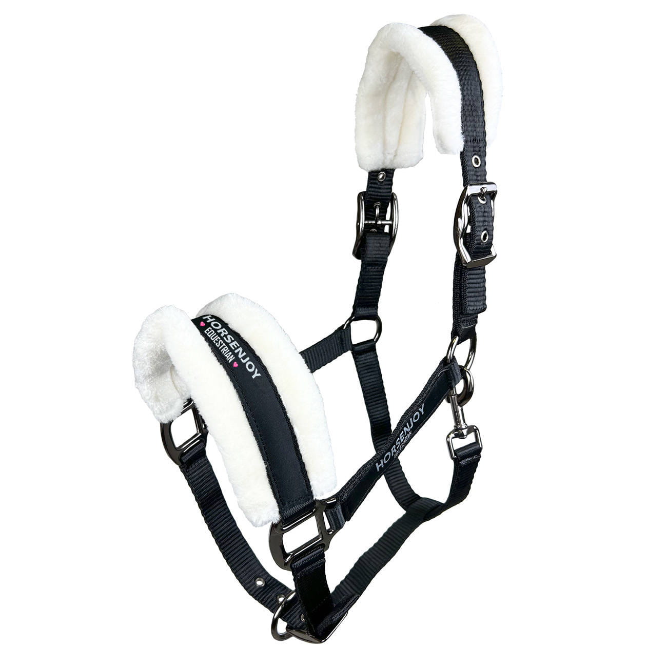 elegancki i komfortowy kantar wykonany z wysokiej jakości materiałów podszycie z miękkiego futerka w części potylicznej i na nachrapniku zapobiega obtarciom solidne okucia w kolorze różowego złota lub ciemnego srebra
