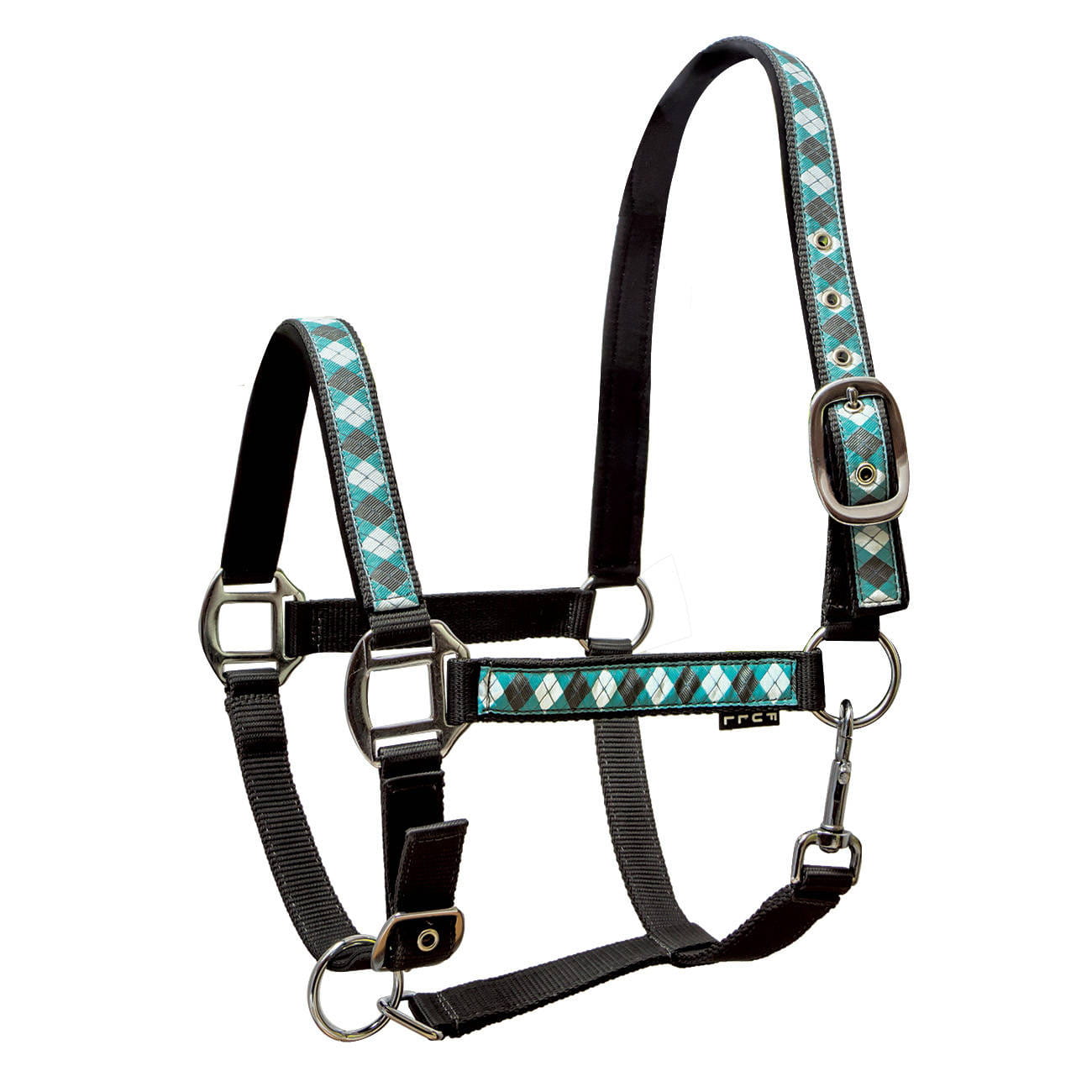 Dzięki licznym wariantom kolorystycznym i szerokiej rozmiarówce, każdy znajdzie odpowiedni model dla siebie. kantar ozdobiony wzorem w romby podszyty imitacją nubuku posiada regulację na pasku potylicznym i nachrapniku okucia w srebrnym kolorze