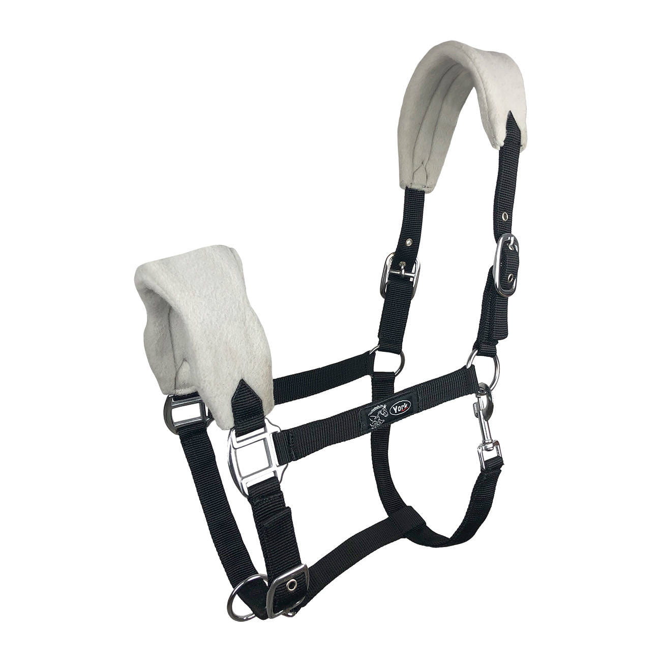 Przy potylicy i nachrapniku został podszyty szerokim polarem, który zapobiega obtarciom i jest komfortowy dla konia.