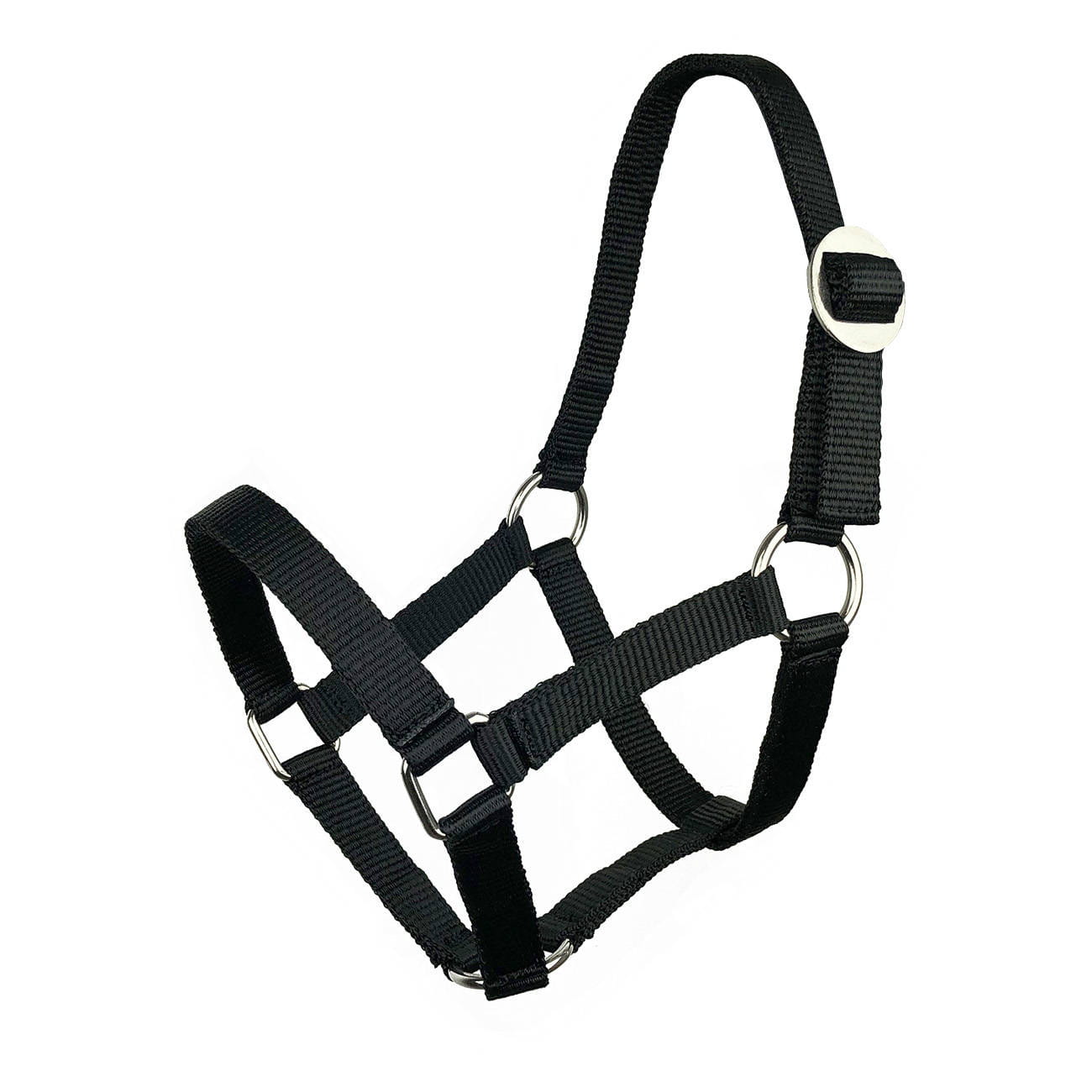 kantar taśmowy dla kuców posiada regulację oraz zapięcie na pasku potylicznym okucia w kolorze srebrnym