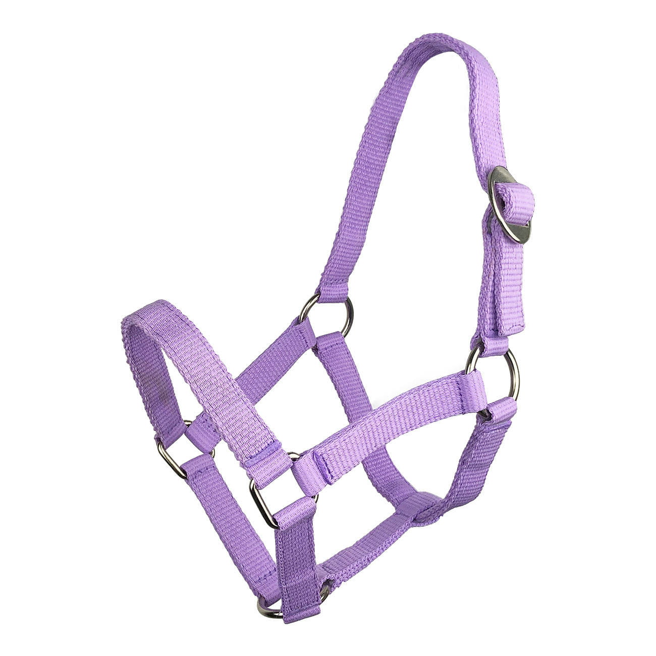 kantar taśmowy dla kuców posiada regulację oraz zapięcie na pasku potylicznym okucia w kolorze srebrnym