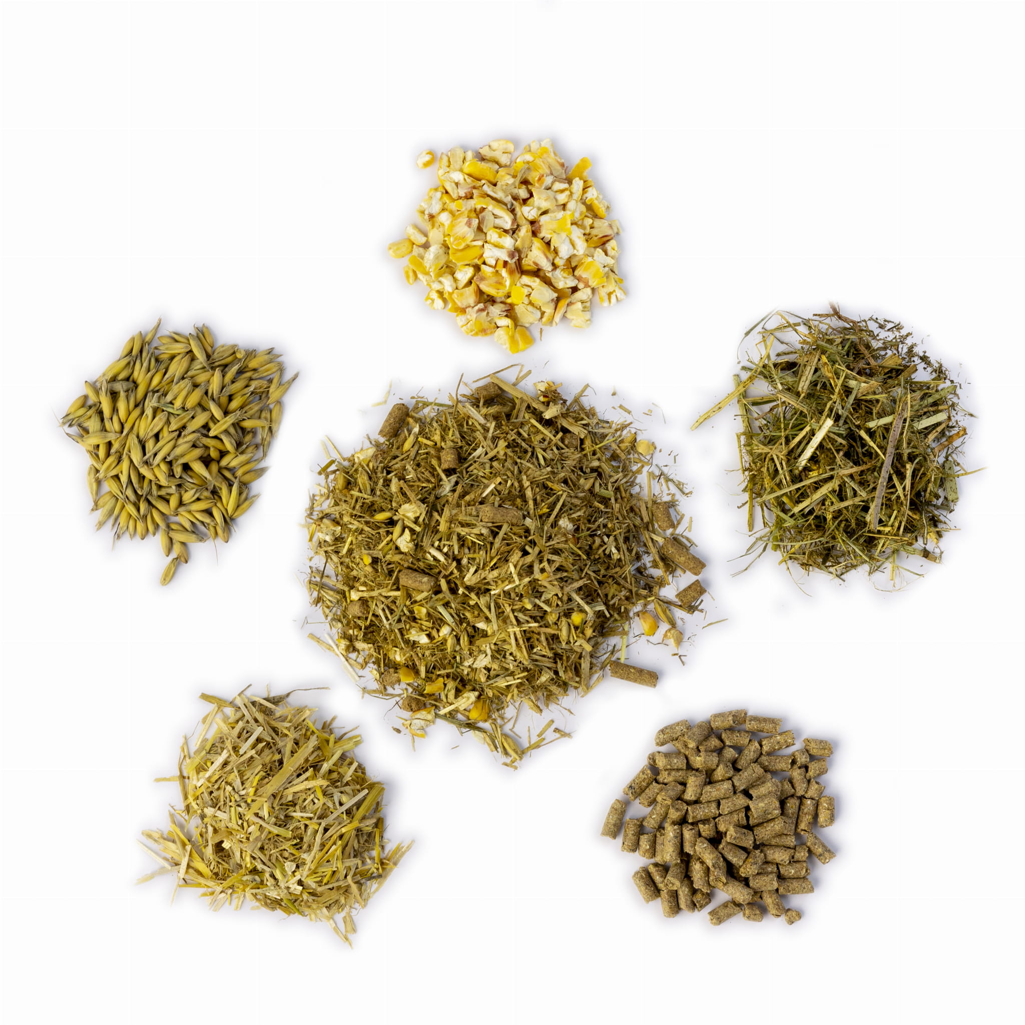 Składniki Wysokiej Jakości: Nasza mieszanka zawiera starannie dobrane składniki, takie jak świeże siano łąkowe, słoma jęczmienna oraz mikronizowane ziarna kukurydzy, które dostarczają niezbędnych składników odżywczych, błonnika oraz energii.